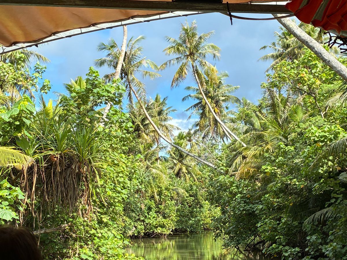 クルーズはゆったりとした川の流れの中のんびりと進む感じ。道中、ガイドの方が楽しませようと一生懸命説明してくれたりココナツの葉でおもちゃを作ってくれたり…温かい気持ちになりました。
