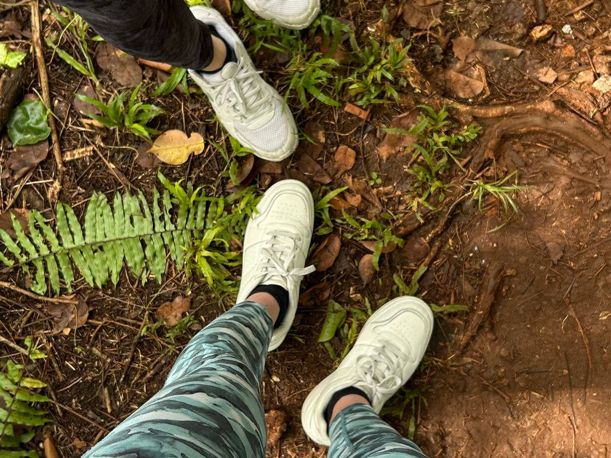 険しい坂とスコールでドロドロになるので、トラッキングシューズか汚れても良いしっかりした靴を用意してください。