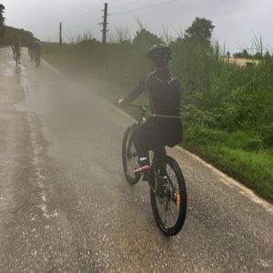じゃっかん下りでのスリップが怖くて減速気味でしたが、非常に楽しかった。MTBというのでしょうか? タイアのエアー圧はかなりひくく、どんな障害物も全く気にする事なく突き進む事ができました。大満足です。