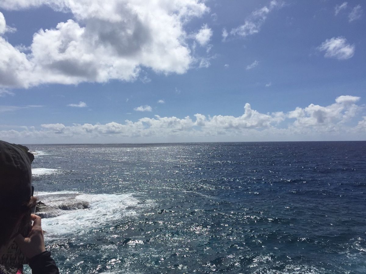 洞窟を満喫してからまた、なかなか険しい道のりを歩き、沢山汗もかいて大変だなぁと思っていましたが、崖の上から眺めるグアムの海はホテル近くから見るものとは全く違うもので、とても感動しました!