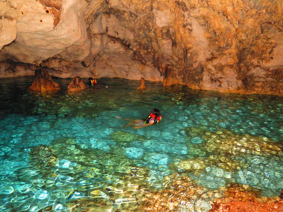 洞窟の中で泳ぐのは初めてで