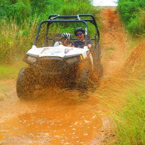 ロケーションは少し離れたところにありますが送迎があるので問題はありません。家内と二人で楽しみました。運転に慣れている方なら女性でも安全に運転できると思います。途中で交代するのでペアの方は二人乗りの方が相手の反応が見れて面白いかもしれません。ジャングルエリアでは結構泥はねしますので汚れても気にならない服装で。グアムの赤い泥は洗濯してもなかなか取れません。