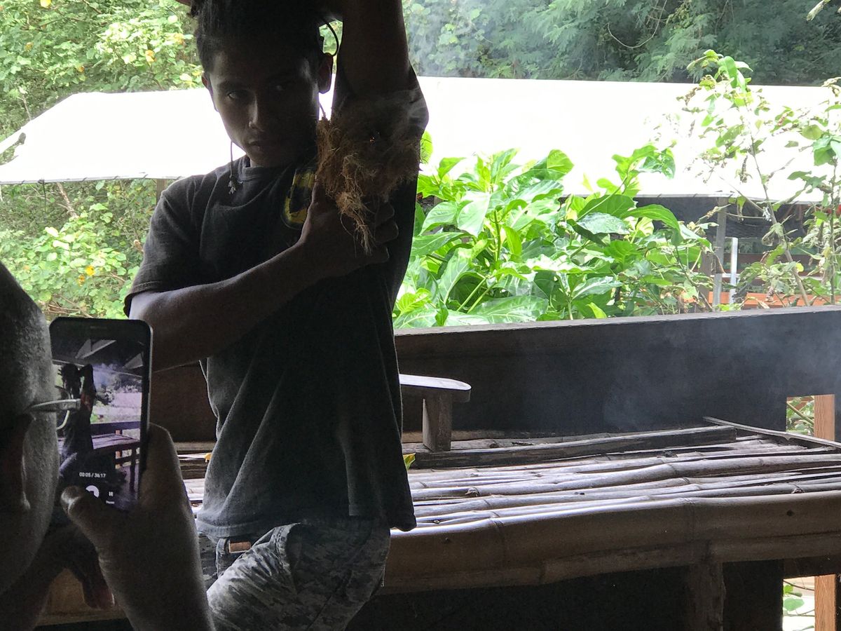 船で川を移動しながら魚や自然について説明してくれたり、子供を楽しませようと葉でいろいろなものを作ってくれたり、動物に触れさせてもらったりして、妻も子供も私も楽しむことができました。