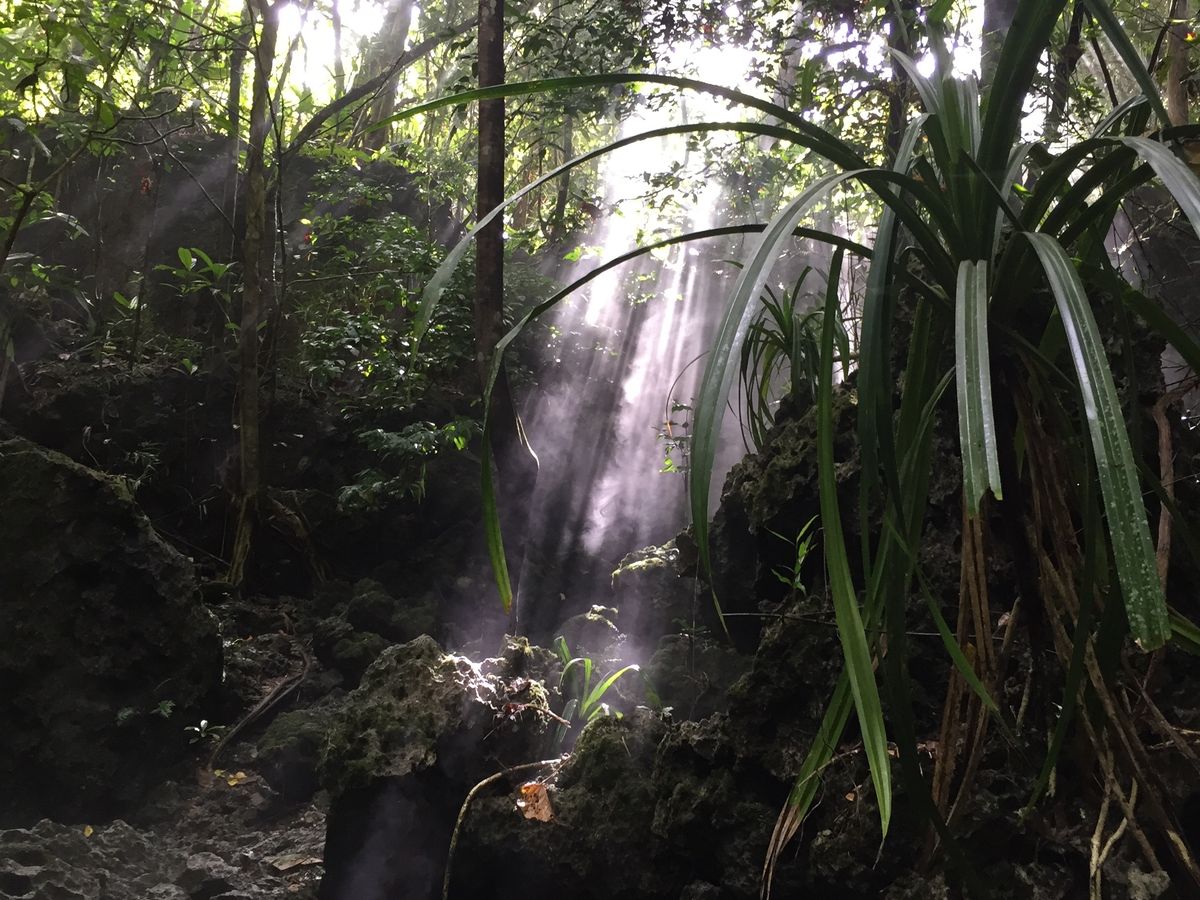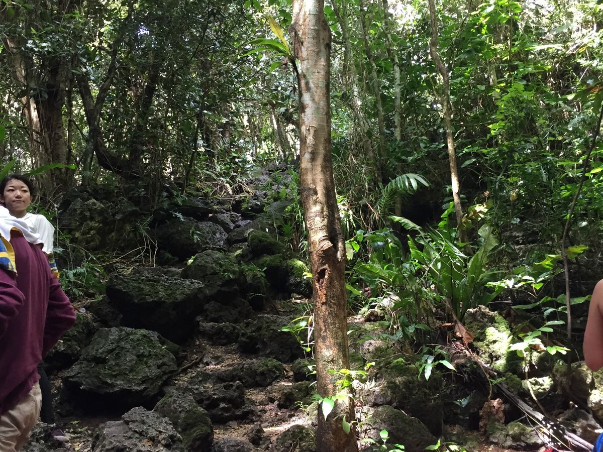 体力に自信がない友人と体力に自信はあるけど鍾乳洞が苦手(怖い)な私とで参加しました。ガイドのフランクさんは、古代チャモロ人や野生の植物について本当に詳しくて、様々なことを我々に教えてくれました。入り口にある「パパイヤの雄株」から始まり、野生のレモン、ミカンパパイヤの実など、次々に匂いを嗅がせてくれたり、食べさせてくれました。その匂い・味の鮮烈なこと!スーパーに並んでるお行儀のよい果物とは違う野生味に、ガツンとやられました。蒸し暑いジャングルのなかですが、木漏れ日が美しく、すごくピースフルです。時折吹く風が、清涼を運んでくれます。オジギソウの可愛らしさ、シダの葉の美しさ、顔よりも大きい葉、古代チャモロ人たちが、無駄なく生活に取り入れていたヤシの実の色々な使い道を教わりました。陸ヤドカリもさっと見つけて捕まえて、みせてくれたり。土器のかけらや「あ、石臼!」。そして高床式住居跡。「人間がネズミから逃れるための住居は高床式なのだ。日本と一緒だな」と、人類はみな兄弟という認識を再確認できました。行きは下りですが、珊瑚からできている岩なので、尖っており、気を使って降りる必要があります。また靴底が普通の厚みをもつものが、必要です。フランクさんは、我々を楽しませようと常にハイテンションで冗談をいってくれますが、おどけているだけではなく、参加者の様子をつぶさに観察し(口唇の色、顔色、汗のかき方、呼吸など)、必要と思うところで、適時休憩をとってくれます。非常に頼り甲斐がありました。ガイドとツアー参加者ではなく、「我々は家族です。一緒に最後まで頑張りましょう」という気持ちが嬉しく、またそれがすごく伝わってくるピュアな心の持ち主でした。パガットケーブでも、ただプールとして遊ぶだけでなく、なぜ全くの真水でないのかなど、その構造や成り立ちなどを教えてくれたり、自然の水晶を見せてくれたりとその魅力を余すところなく伝えてくれました。だから、鍾乳洞が怖い私も、全然平気で楽しめました。体力に自信がない友人は暑がりなので、ジャングルの中では汗だくでしんどがっていましたが、洞窟内では、気持ちがいいと喜んでいました。一方、蒸し暑いのが平気な私は、洞窟内では、身体が冷え切って上がる頃には歯の根があわなくなるほどでした。これこそが「自然」ですよね。それから、少し歩くと目の前にぱあっと広がった太平洋の美しいこと!どうこの青さ!!断崖絶壁で食べたオニギリやオレンジがこれまたどんなフルコースよりもご馳走でした!!帰りは登りなので、さほど歩くのに気を使う必要がないです。ただ、日頃運動されてない方はしんどいようでしたが、それもフランクさんがサポートして、いい感じでみんなでゴールできました。最後にみんなで飲んだ冷たい飲み物の美味しいこと。我々が忘れていた何かを、突きつけられ続けた様なツアーでした。次回は、家族で参加します。その時に、フランクさんまたお会いしましょう!本当に楽しかったです!!ありがとうございました。