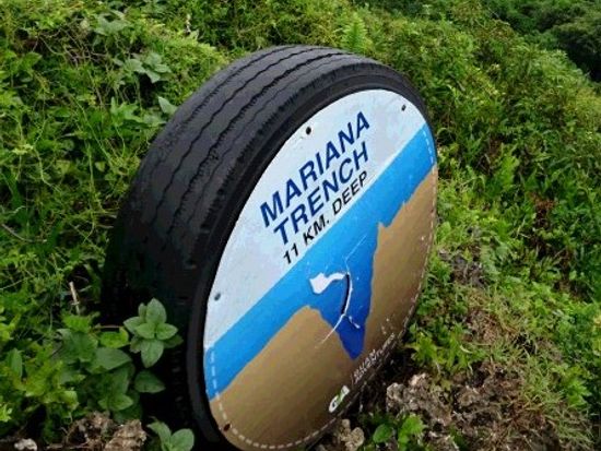 そのまま進むと世界一深いと言われるマリアナ海溝の断崖絶壁に到着。