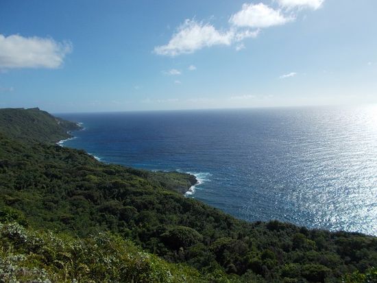行きは起伏の激しい下り坂で、一部ロープを伝って降りないといけない場所、道にもなっていない場所がありました。このトレッキングは少なくとも健脚でないと厳しいです。合間にジャングルに自生する植物の説明や、チャモロの文化、歴史のことも詳しく教えてくださり、貴重な経験になりました。