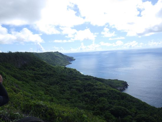 目立つ看板も建物ない、「えっこんなところ?」という道端からハイキングスタート。スタッフのフランクさんが道中、ずっとジャングルの事、グアムの歴史の事など話してくださり、常に安全に気を配り、険しく大変な道でも元気づけて参加者の体調も気にしていたので安心できました。途中の洞窟で泳いで暑さをクールダウン出来たし、崖から見渡した大海原は「初めて見た、こんな綺麗な海」と呟いてしまうほど綺麗でした。ハイキングで頑張ったから見れた透き通る濃い青い海。グアムが大好きになりました。