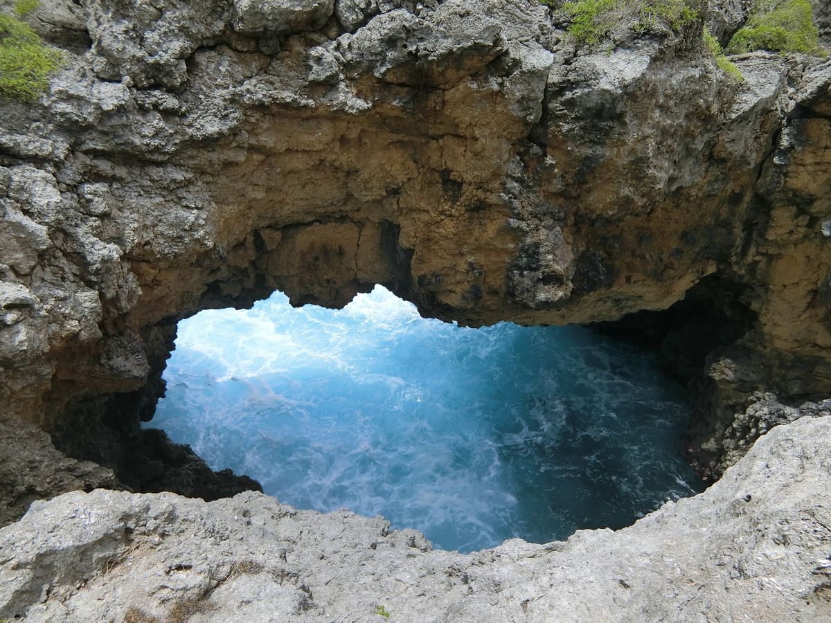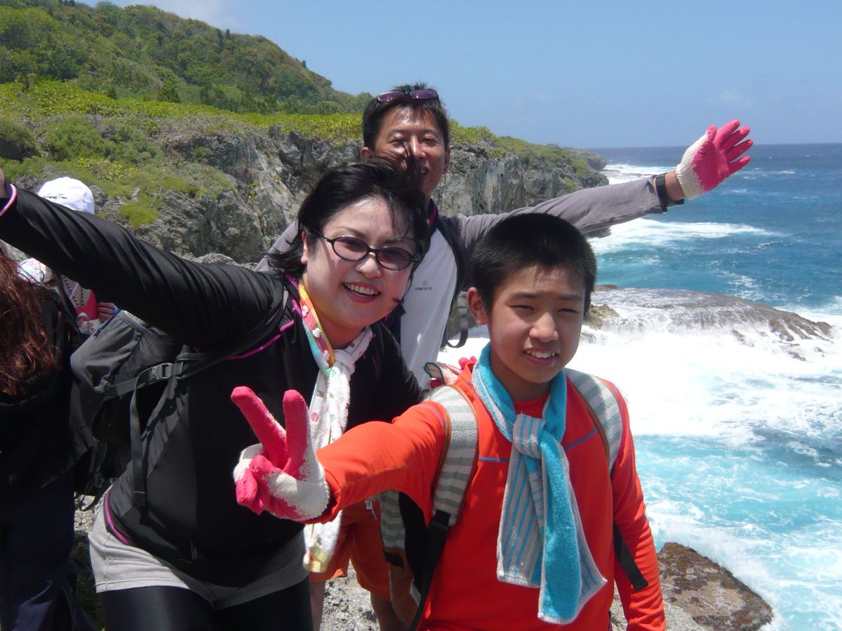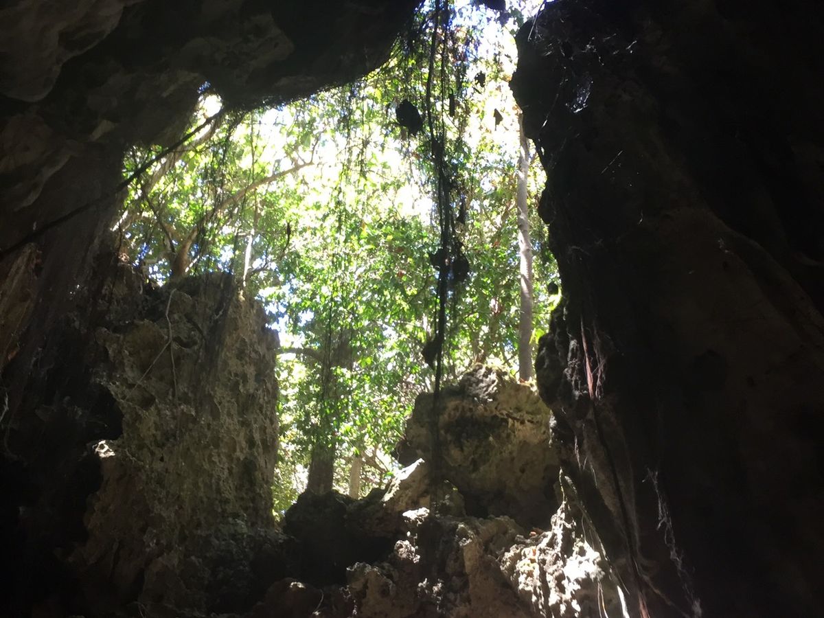 11歳の息子は、ガイドのキミコさんのすぐ後ろをついて行くので、昔の話や、植物の特徴などしっかり聞けて、またチャモロ人ガイドのフランクに遊んでもらったり、口笛を教わったりして、楽しんでました。天気も良く、ツアー11人とガイドさん2人でした。ジャングルな感じを進み、暗い穴?の洞窟に着くと、そこはもう、、まさに神秘的な場所でした。歩いて汗だくだったので、そこの水は冷たく気持ち良かったです。真水なので、体もベトベトしないし、マイナスイオンたっぷりな感じで、リフレッシュできました。そのあと、太平洋を望む崖に到着!集合時にもらった、おおきなオニギリ2個とお菓子を青空のしたで食べ、最高でした。ラッキーな事に、ウミガメも3匹見ました。