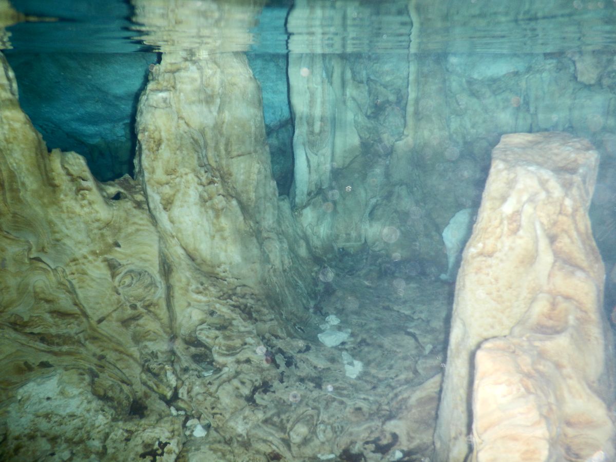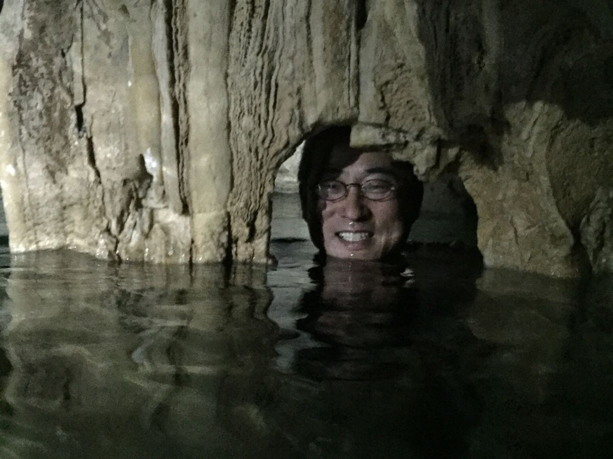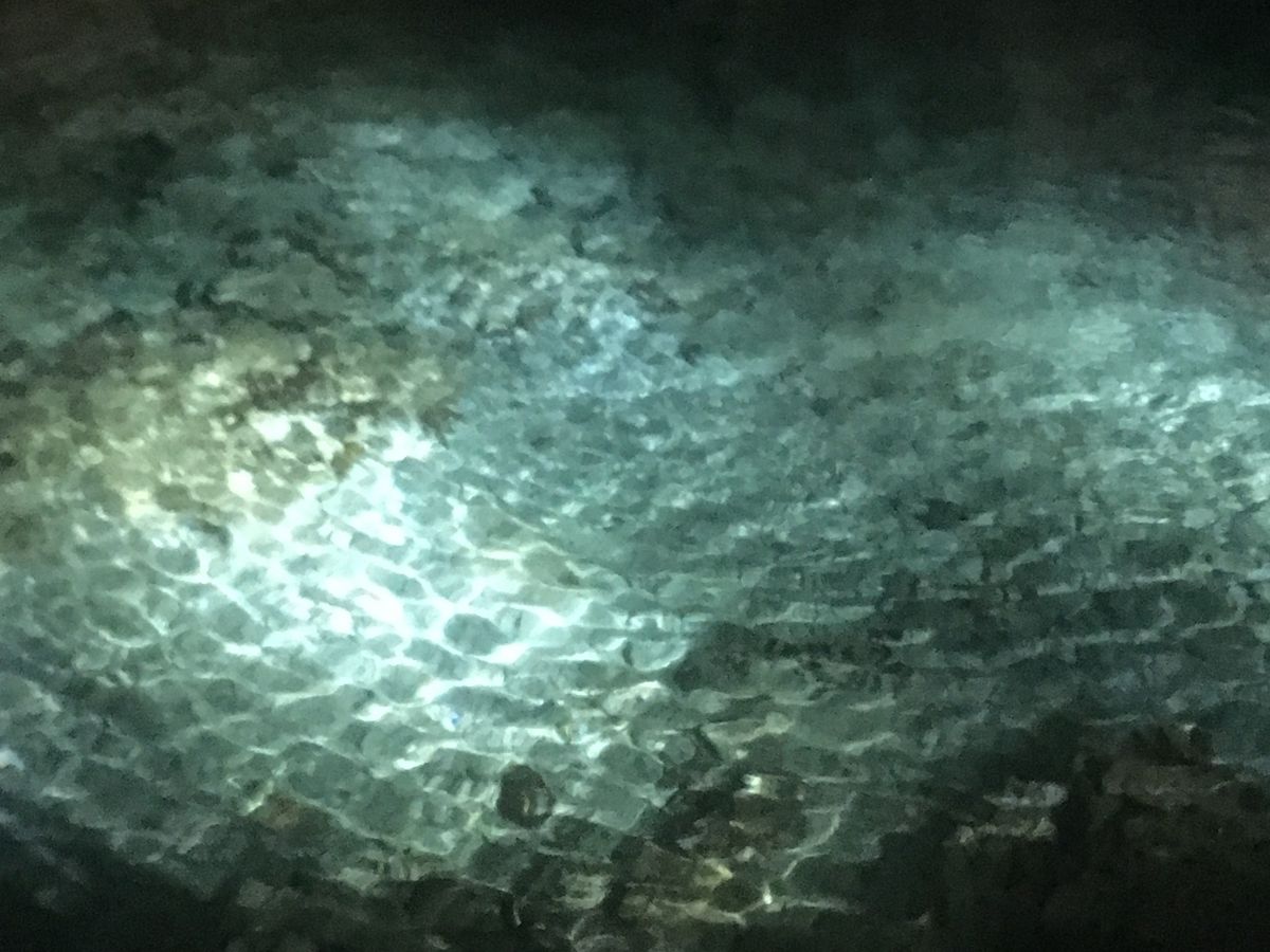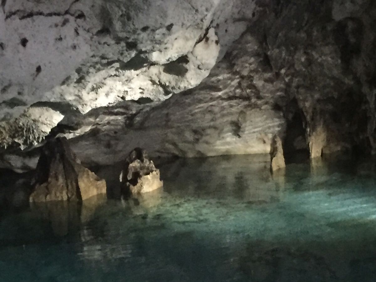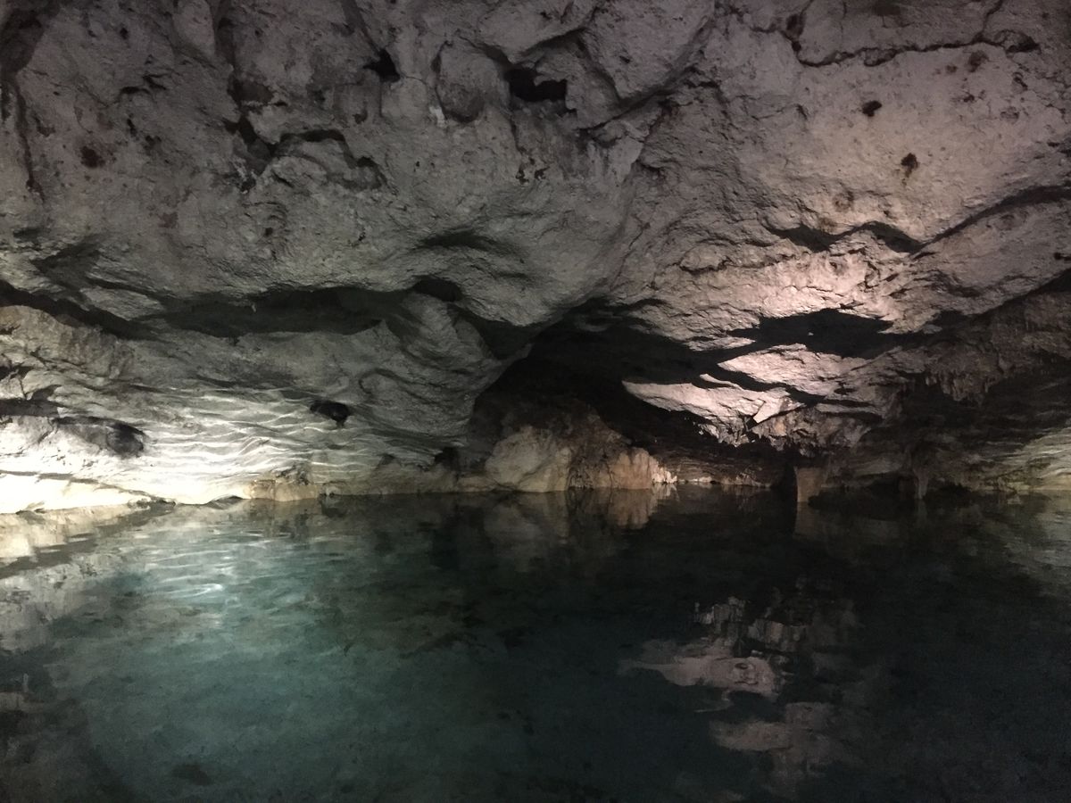 洞窟の水はすごく澄んでいて底が見えるので、深くないのかと思いきや、一番深いところは180センチくらいありました。ゴーグルをつけて泳ぐと、暗がりながら隅々まで見えるほど透明でした。こんな神秘的な洞窟で泳げるなんて、本当に素晴らしい体験でした。洞窟では結構時間を取ってもらって、ゆっくりと泳いだり潜ったりすることが出来ました。