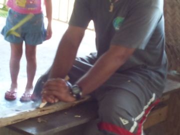 おじさんがしゃべりながら、ヤシの葉に似た葉っぱで器用に髪飾りや魚のモビール的なものを作って、みんなにプレゼントしてくれました。