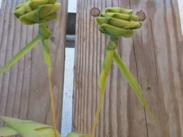 参加者全員に、ヤシの葉で花や、ヘアーバンドを作って頭に飾ってくれました。