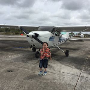 息子のために申し込みました。私は高いところが苦手なため、当初は息子と母親だけ参加させようとしてましたが、付き添い2名まだ無料ということで、もったいないからという理由で無理やり参加させられました。小型機はおそらく揺れるだろう、また機内が狭く逃げ場がないため、大変ことになると警戒して乗りましたが、いざ乗ってみると、、、揺れは想像以上に激しく、密着した窓からすぐ真下に見える地上を見ると、もう怖くて怖くて、やっぱり大変なことになりました。息子は4歳でまだ右も左もわからず、搭乗前の操縦説明では、右はどっち?と聞かれても真逆な回答をしており、息子の実力をよーく知っているだけに、その息子が操縦していると思っただけで怖さは倍増、私にとっては罰ゲームのような体験でした。飛行時間はすごく長く感じたのですが、あとで確認すると30分程度でした。4歳児なので操縦の真似事をするだけだと思ってましたが、結局、離陸から着陸までずっと息子が操縦かんを握って操縦してました。息子にとってはとても貴重な体験になったと思いますが、高所恐怖症の人にとってはたまりません。