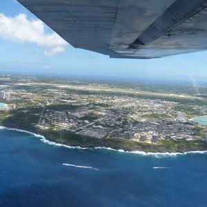 落ちたら確実に死ぬやん!と、思い怖かったけど、パイロットは、日本人でしたし、落ちるわけない!との事で安心しました。天気が良かったこともあり、グアムの綺麗な海が、より一層絵の具をこぼしたような鮮やかなスカイブルー?アクアブルー?で、感動いたしました!
