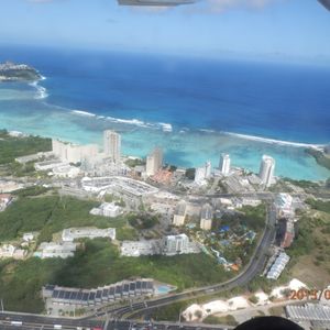 スロットル(アクセル)をいっぱい開いて速度が上がってきたら操縦桿をゆっくり引くとお尻がふぁっと浮いた感じがして左側に目をやるとGUAMのホテル街が見えました。