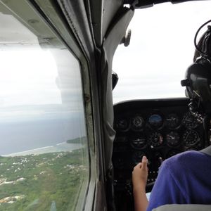 はじめてのセスナ体験。。母(70歳)が操縦体験をしました。初めは少し緊張していた母ですが、指導してくれたパイロットの方がとても親切で離陸時も気がついたら飛んでいたという感じでほとんど揺れもせず、グアム島の北から南までが全部見えたり、ココス島の少し手前にハート形の島を見つけたりと、たくさん素晴らしい景色を見ることができました。着陸もなんの問題もなくスーっと降りて、母は達成感でいっぱいになっていました。