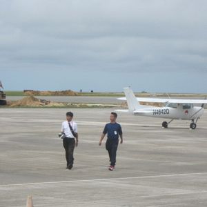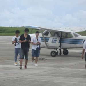 当初、半信半疑だったがほんとうに自分の操縦でほんも ののグアム空港の滑走路を走行しエンジン全開で離陸し て、上昇から水平飛行 もう最高でした 眼下に港やタモ ンビーチ、恋人岬の上空を飛行して空港へ着陸。そんなのア リ?って感じでした。