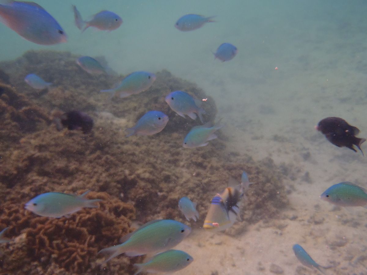 6歳、4歳の子供とシュノーケリングをしましたが、海の中を覗くと沢山のお魚に、子供達も夢中でした。