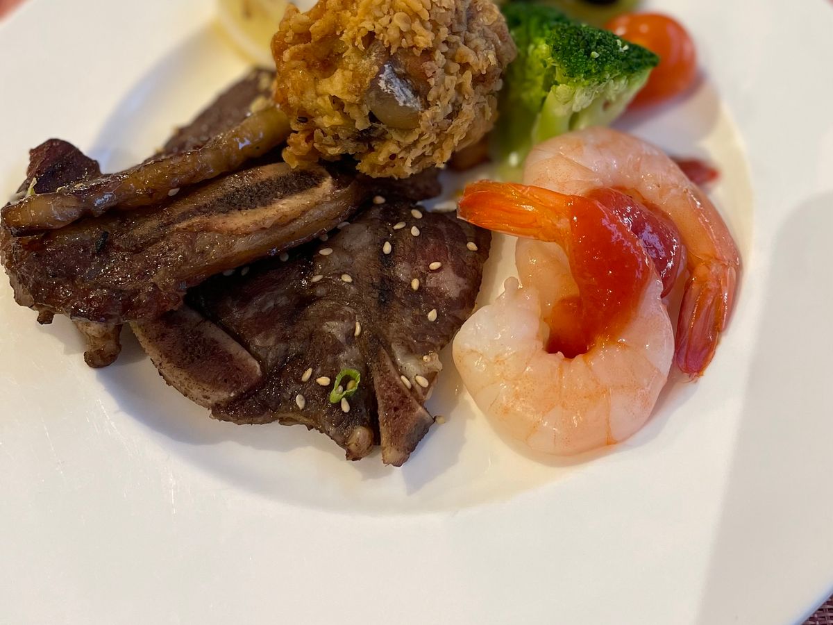 一番楽しみにしていたローストビーフですが、少し噛み切りにくく、日本の物とは少し違う印象でした。一番美味しかったのはエビチリかな。