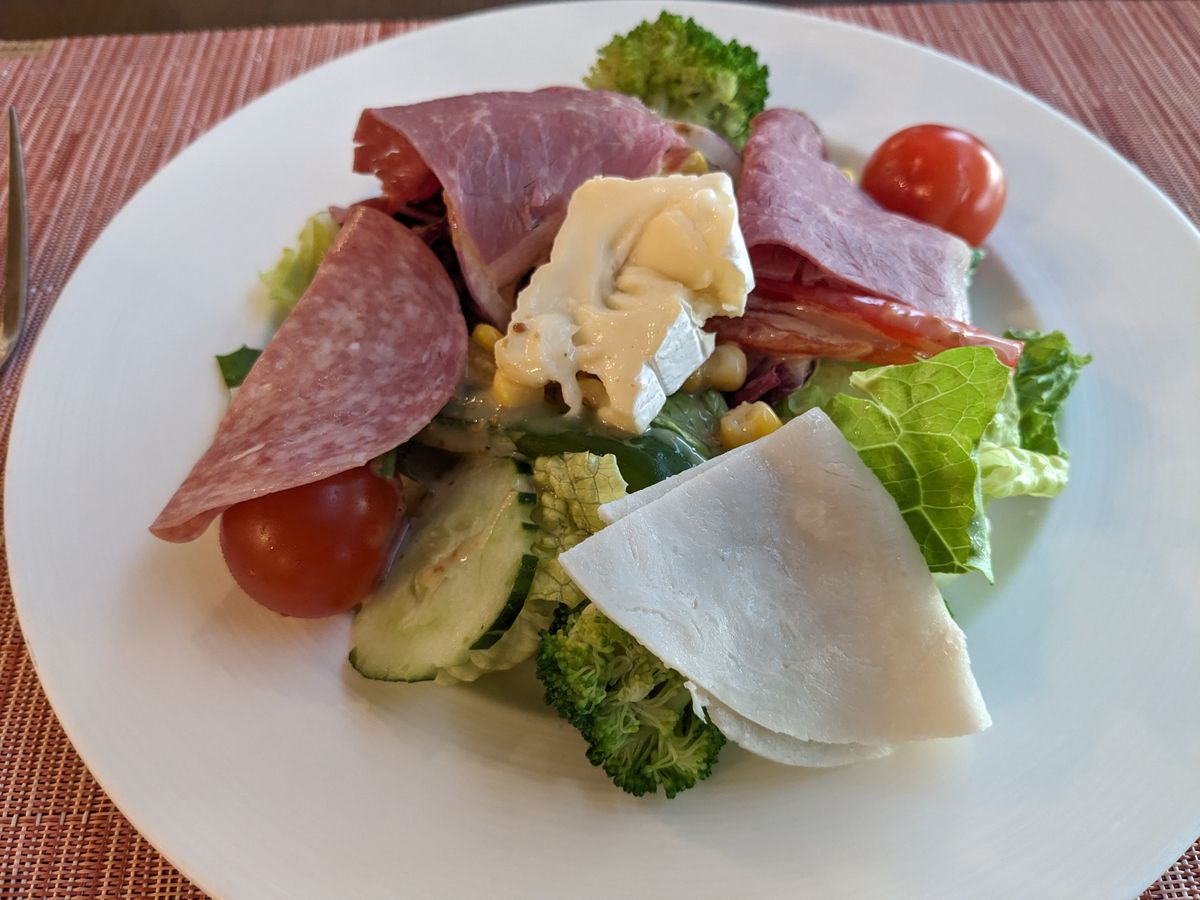 色々な種類のハムやチーズもあり見た目も楽しいサラダが作れます。野菜に関してはもう少しフレッシュさを感じれると嬉しいと思います。