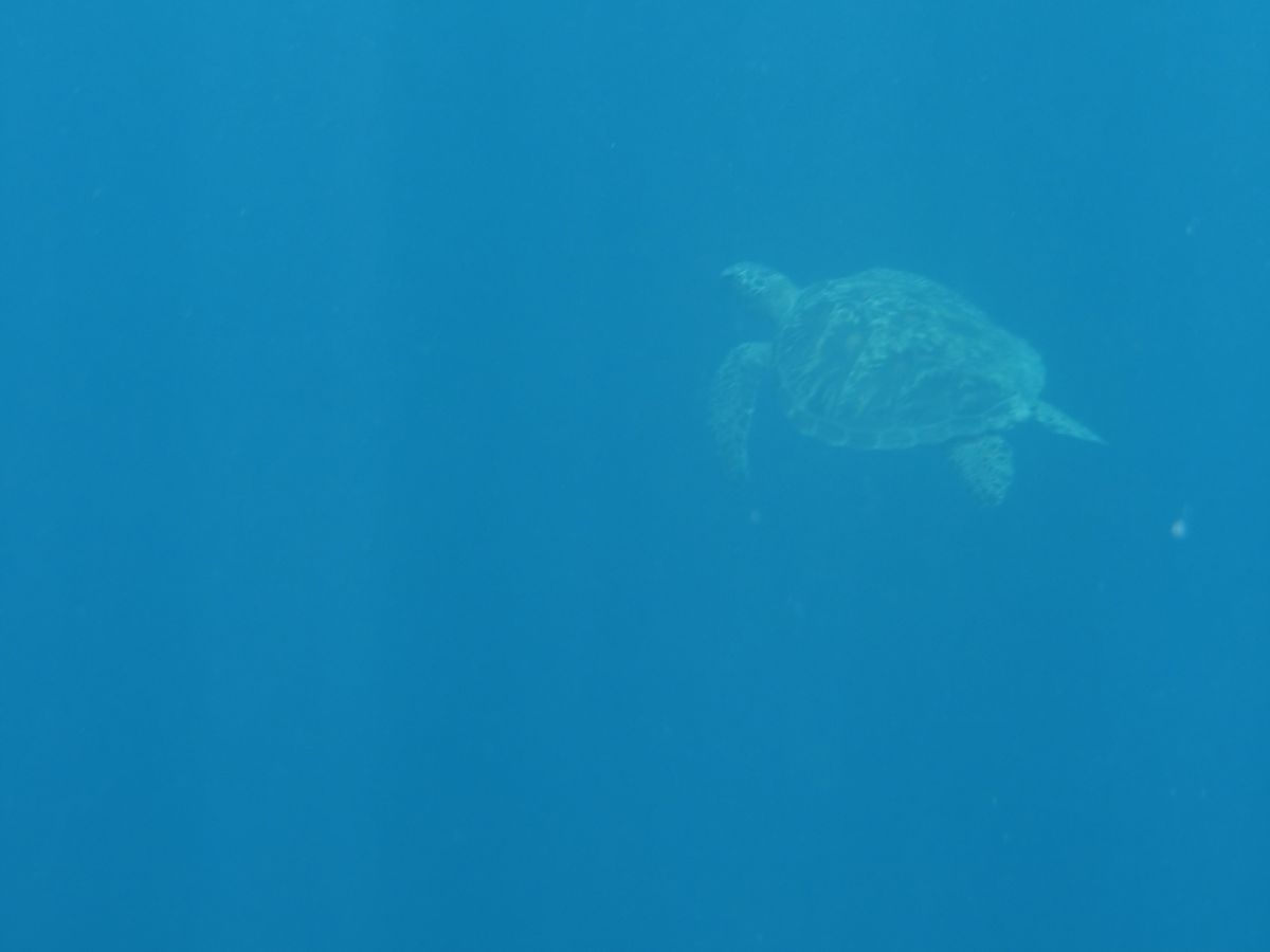 その名の通り、ウミガメを3匹も見ることができました。ダイバーの方と一緒の船で出かけ、海に入るとその方たちが下のほうに見えて面白く、カメが泳いでいるとサインを出してくれました。