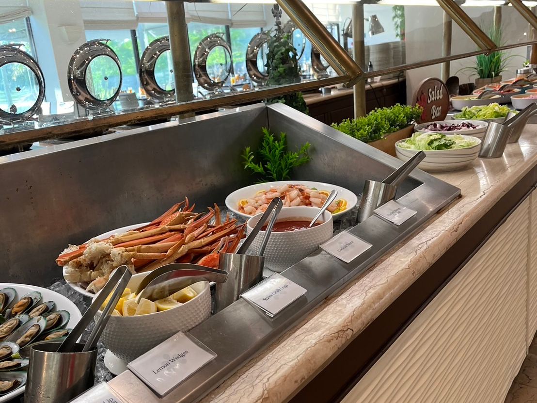 モニター付きのプランで2人で予約しました 食事の種類も豊富でシーフードメニューもう沢山あって豪華でした ちらし寿司やカリフォルニアロールも美味しくて ステーキもスタッフの方が切り分けてくれていて豪華でした!ウェルカムドリンクもトロピカルな色でテンションあがりました ただ窓側の席に案内されましたが窓ガラスが汚れていたのが残念でした またベルトラで決済済みだったのに帰りに宿泊ホテルと部屋番号を聞かれて二重に決済されてしまい バーチャーを見せて説明しました スタッフの方は感じは良かったのですが待ち時間もかかりそれも残念でした トイレ何少し離れているので早めに行った方がいいかと思います