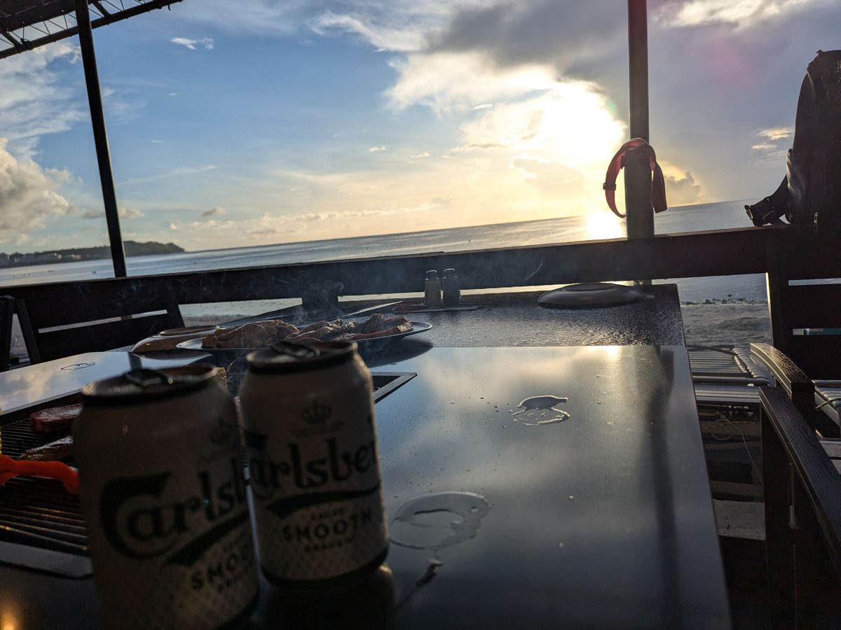 座席はこちらのコースだとテラス席ではありません。テラス席はバーベキューのコースで利用するようです。とはいえちょうど日が沈みはじめ、きれいなサンセットを見ることはできました。