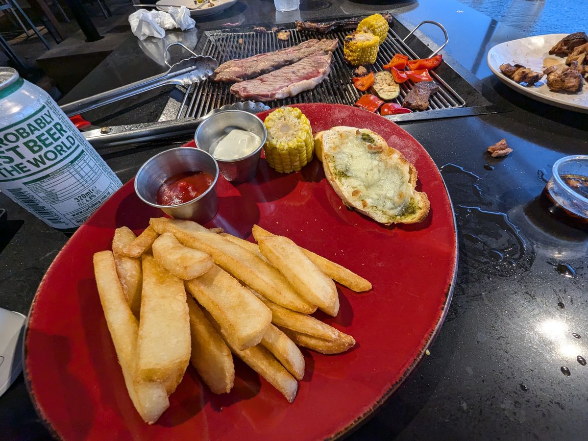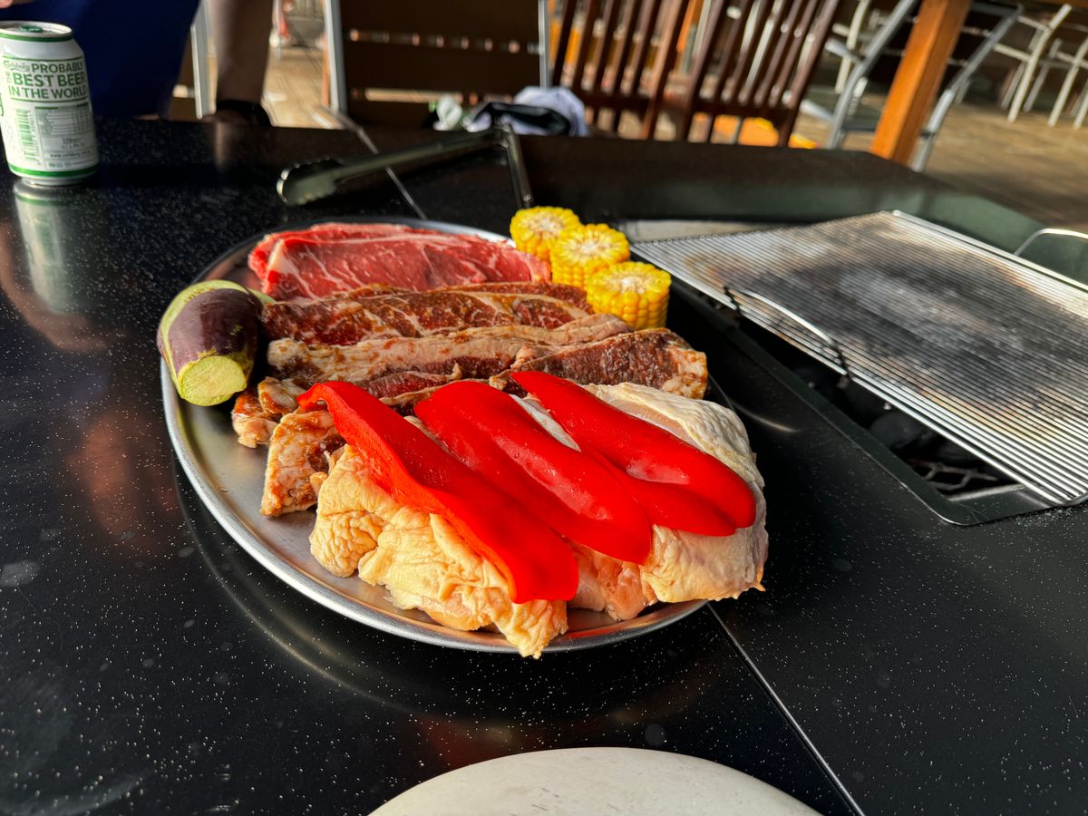 食べ放題メニューに白米とスープがありお肉(うちの子は鶏肉だけしか食べず)を分けれたので、偏食でない限りはBBQメニューだけで満足できると思われます。白米だけだと味気ないなら、ふりかけとか韓国海苔とかご飯に添られるもの持参がベター。