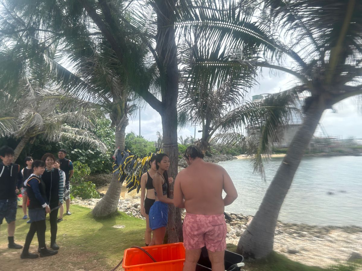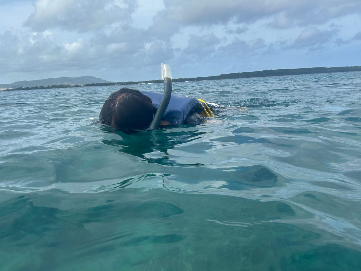その後、海のど真ん中でシュノーケリング!貸出用のシュノーケルは消毒されてますが、あまりきれいではないので…。