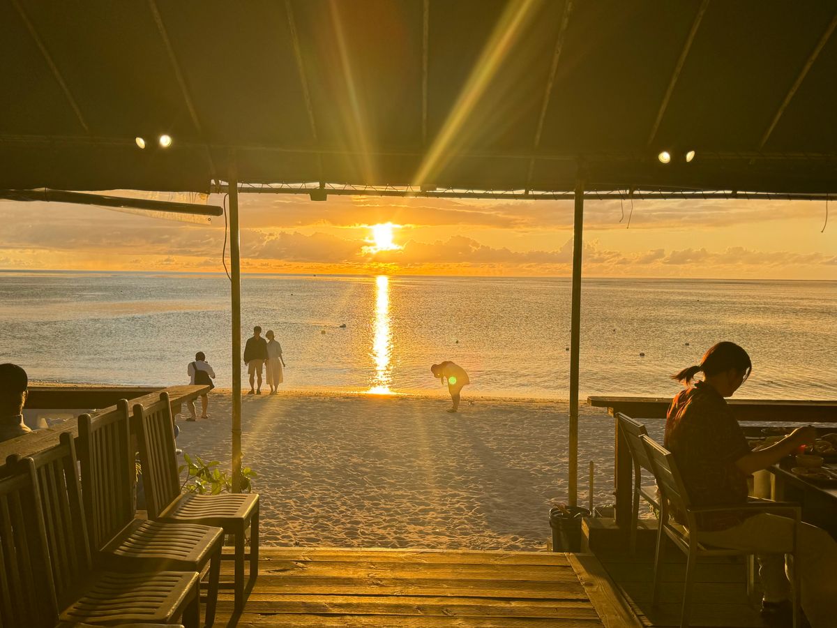 正直Googleマップで見た写真などからあまり期待はしていなかったのですが、結論から言うと、とにかく最高でした!!!!!タモンビーチはとても綺麗なビーチで、お店のある場所は天気さえよければ完璧にサンセットを望むことができる場所です。