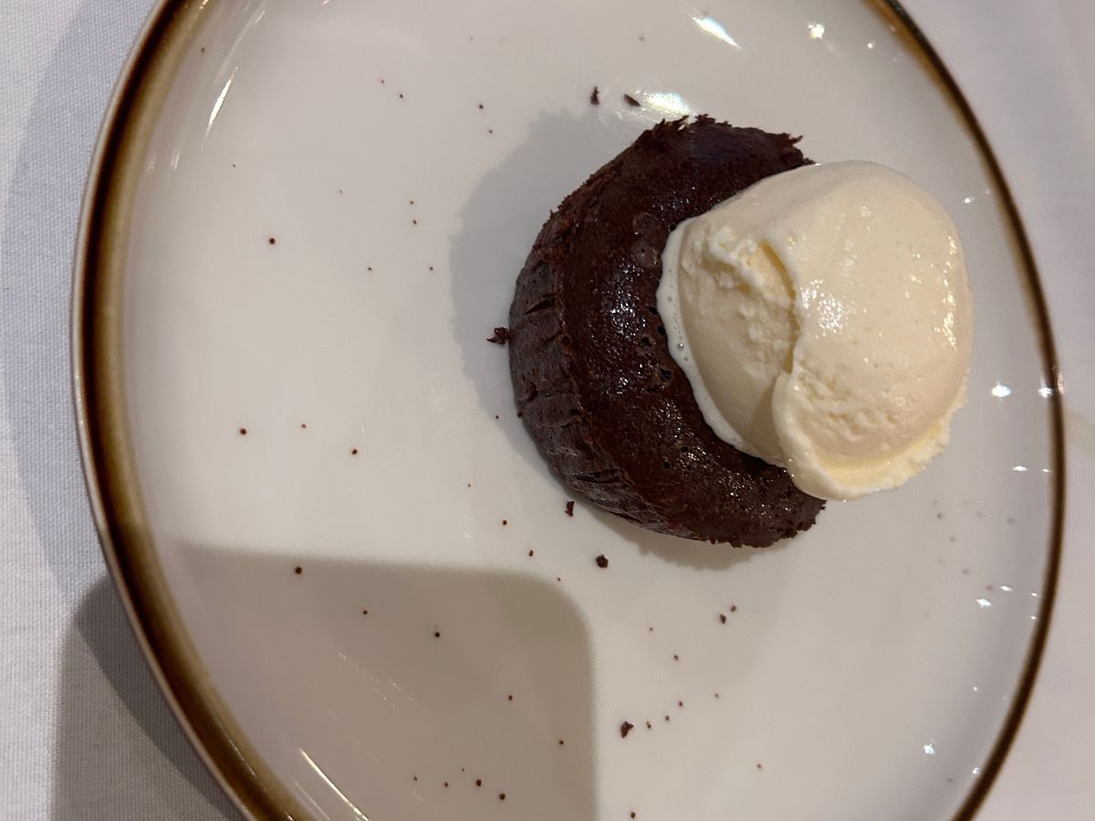 量がボリューミーでデザートにフォンダンショコラがきましたがステーキ後のフォンダンショコラはおもたかった(笑)