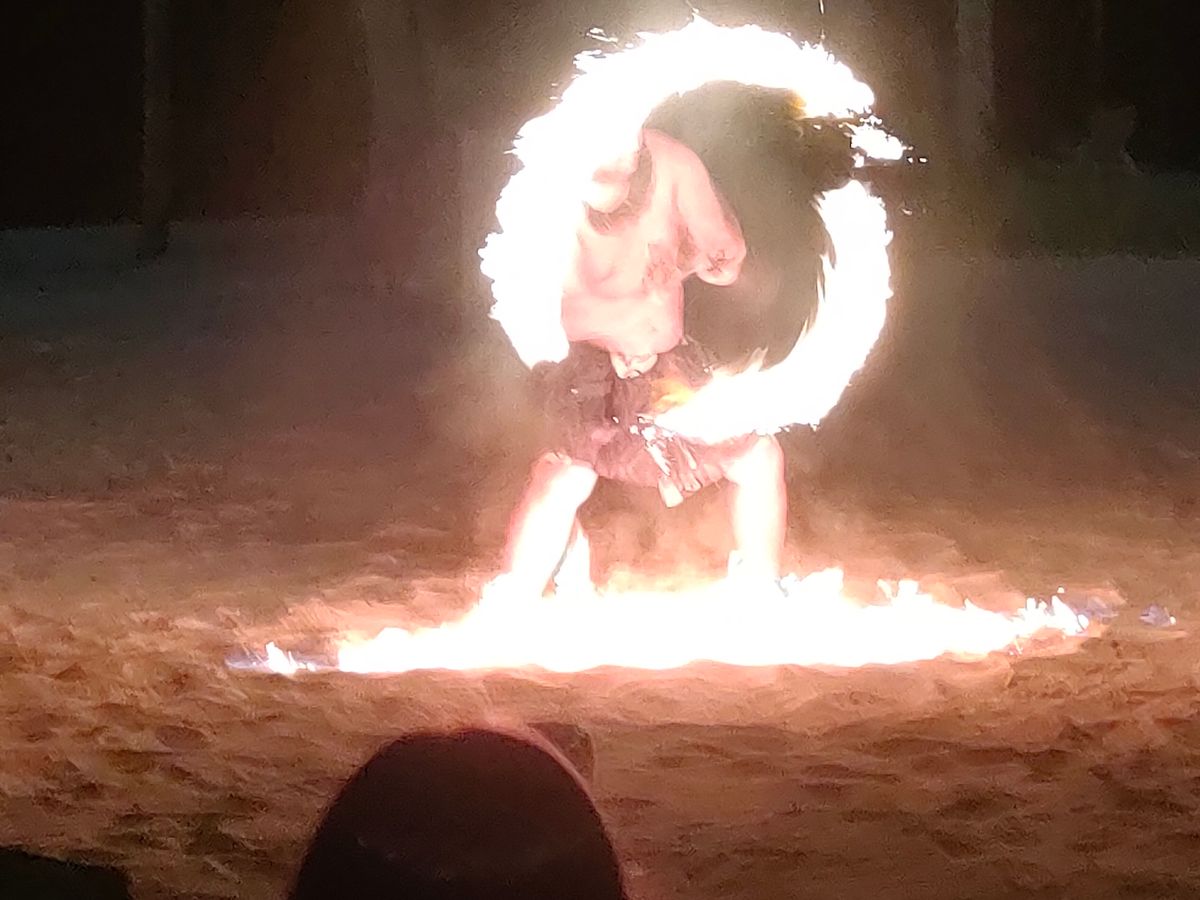 いい感じにおなかいっぱいになった後の火のパフォーマンスが凄かったです!