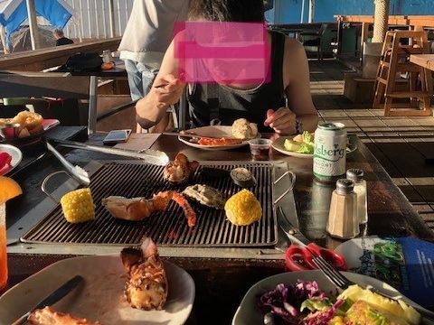 汗でギトギトになるくらい気温とBBQコンロの温度が高く汗をかきながら食べました!