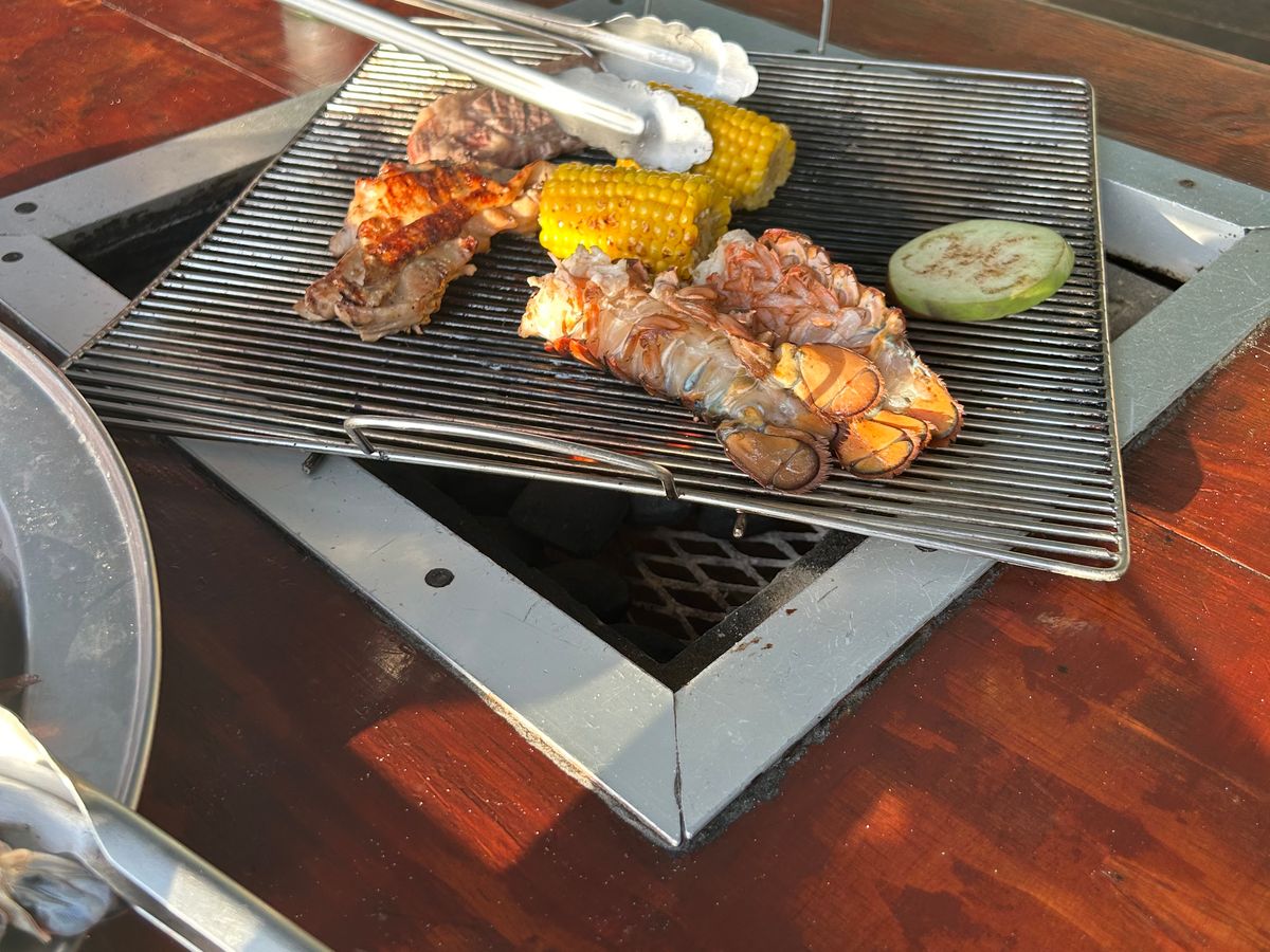 2名だったのですが、とても満腹で満足できる量でした!チキンには味がついていたし、ステーキは塩コショウで食べて、とっても美味しかったです。ロブスターは店員さんが見極めて切ってくれたので安心して食べれました。ビールもキンキンに冷えていて最高でした!!サラダや白米もあったので沢山食べたい方にはとてもいいと思います。