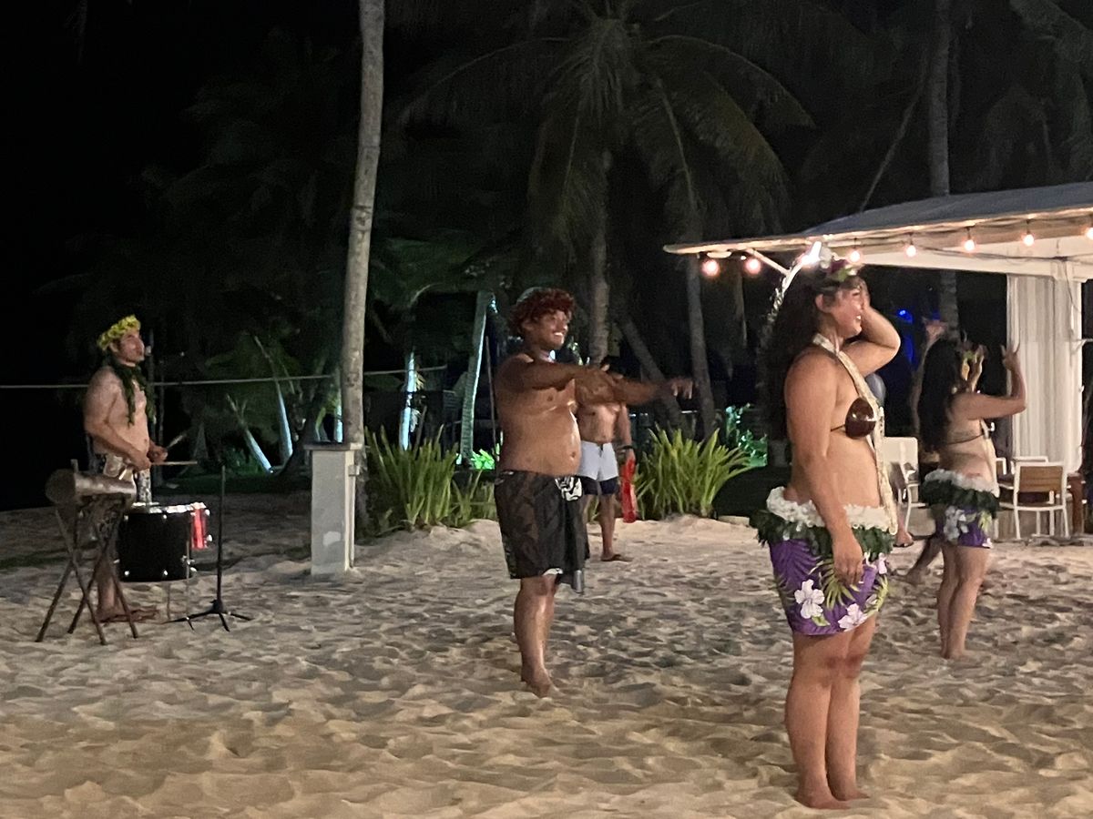 ファイヤーショーが始まると子供も興味津々に見ていました。後半お客さんも砂浜のステージに招待されてダンサーの方々と20人程で皆んなでダンスを踊ってそのまま写真撮影タイム。大人も子供もみんな楽しそうでした!