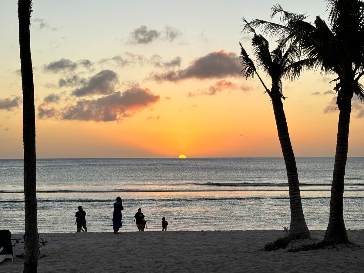 お迎えは大型バスでユッタリ。到着後燃え盛る熱い炎でバーベキュー。美味しくてお腹いっぱい。ドリンクは飲み放題。食べてる間に水平線に沈む夕陽が真正面に見えます。綺麗!暗くなってからファイヤーダンス。迫力〜。最後はみんなで輪になって踊ろ。ダンサーの方が希望者全員と写真撮ってくださいます。あ〜楽しかった。ありがとうございました。