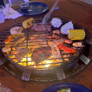 ショーは良かったと思うけど、残念ながら肉が硬かった、海老が網から落ちて3分の1は炭になってしまった。