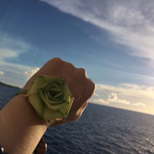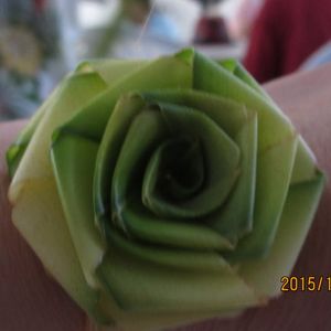 HPの写真の様には真っ赤ではなかったけど、島陰に沈む夕日はギリで見えました。この日は風があり波が高く、甲板に出ると揺れが凄くビックリで船底に待機していたら、スタッフの人がココヤシの葉でバラを作って腕に巻いてくれました。とても器用に編んでいました。小さな船で揺れが凄かったので戻って穏やかな内海でディナーになりました。食事もまあまあ美味しくて飲み物もビールやジュース飲み放題でした。スタッフの皆は陽気で声を掛けてくれたり、踊ったりと楽しかったです。が、1つ不思議だったのが、行きのホテル迎えでPICまで随分距離があるのにクリスピーはバスから降りて歩いて来たことです。。。私たちはバスの中で20分位何も言われないままずっと待っていました。???