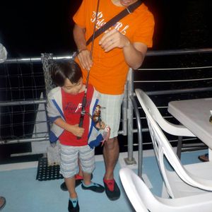 2016.1に家族(子供11歳8歳)で参加しました。子供たち初クルージングで、下の子は船の揺れを怖がりながらも楽しんでました。上の子は釣りをすごく楽しみにしていたのですが、満月の日で釣りには向かなかったようで釣れず。周りでは何人か釣れてました。