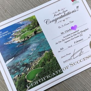 マンギラオ12番ホールでワンオンしますとフロントにてワンオン証明書を発行しております。
