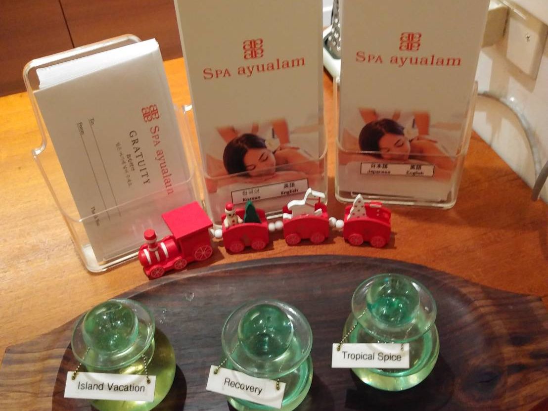 オイルはスパアユアランオリジナルのものを常に複数ご用意しております。(一部、技術と効能の兼ね合いから指定のオイルがあり、お好みのオイルをお選びいただけないメニューもございます)