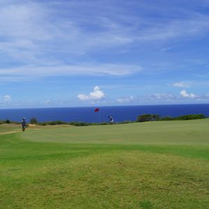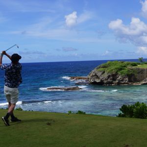 1番からスタートで前半は丘陵コース、10番からは海を見ながら絶景のコースでした。名物ホールの12番は海越えはしたのですが残念ながらグリーンには乗りませんでした。また挑戦したいと思います。
