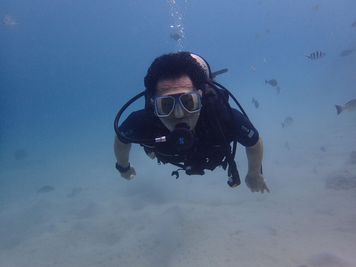とても親切で朝早いので まだ誰もいない素敵なピーチに案内してくれて写真を沢山撮ってもらいました。お爺さんも孫も笑顔な全員集合の写真が宝物になりました。