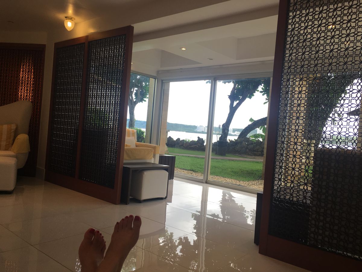 私どものスパはグアムにおいてヒルトンホテル内とニッコーホテル内の2店舗がございますがそれぞれ違うコンセプトでデザインされており、今回ご利用いただきましたヒルトン店は南国のグアムらしく、日が差し込み、ラウンジからは海がご覧いただけるスパでございます。
