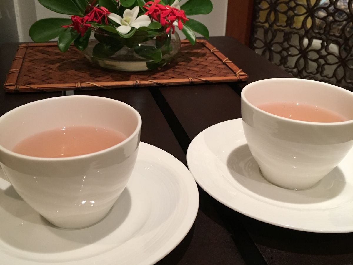 施術前後にご用意いたしましたのは、デトックス効果のあるハーブティーでございます。カフェインが入っていないため、少し味が薄くお感じになられたのかもしれません。