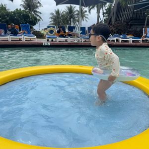 朝から夕方まで本当に1日中プール&海で遊んでいました。ランチブュッフェも種類が豊富で子供たちにはデザートコーナーが人気でした。連日遊びに行きたかったです。