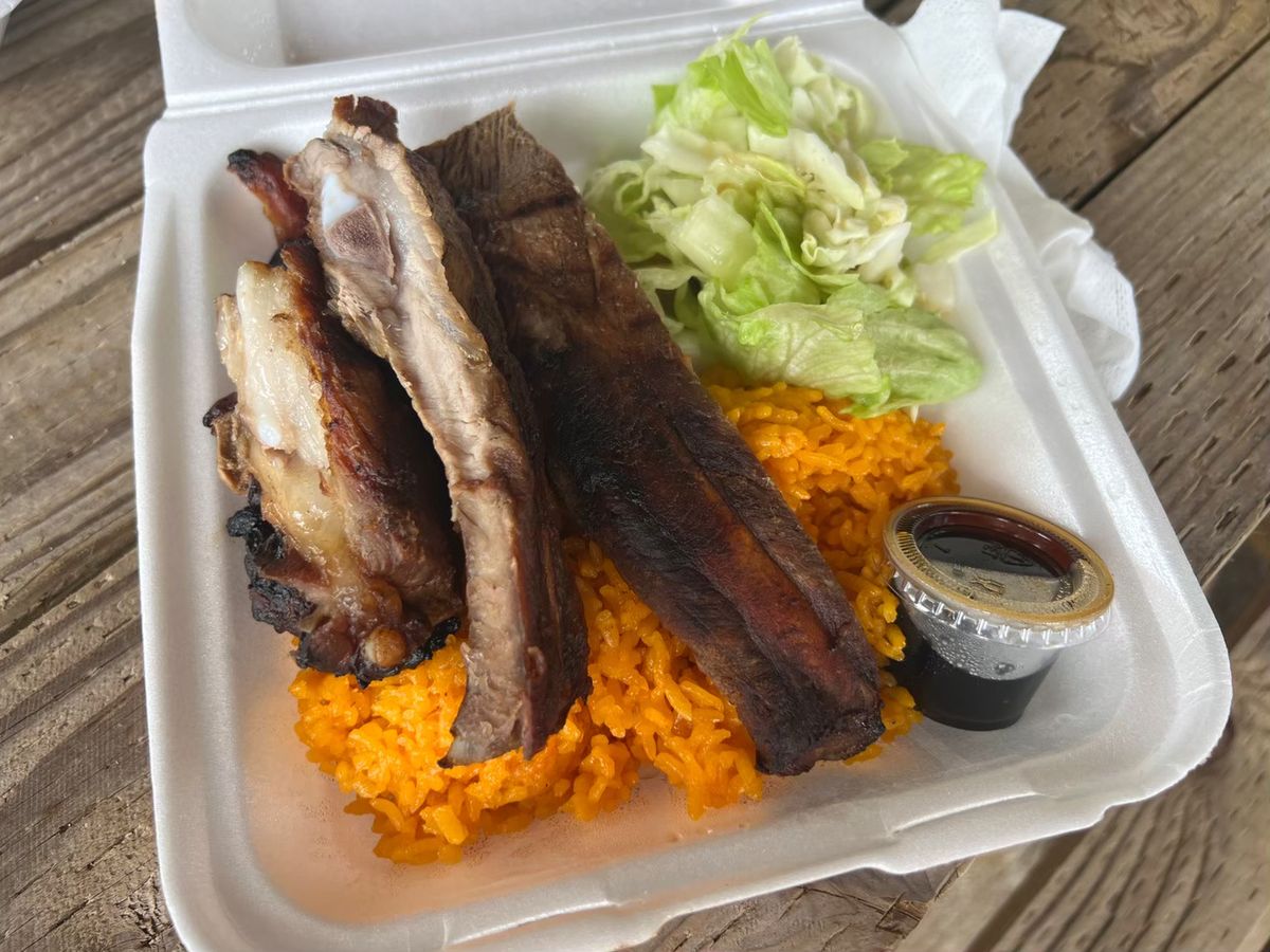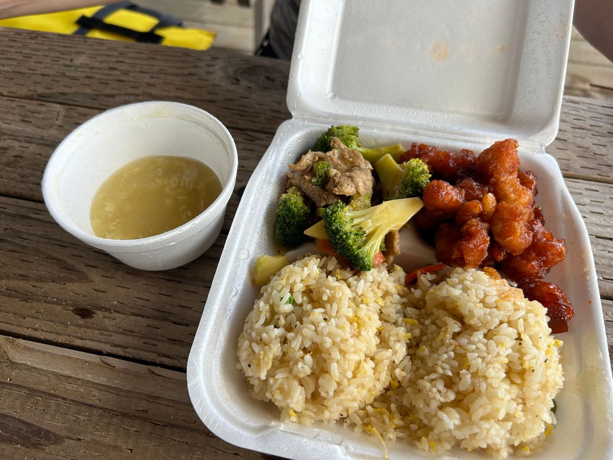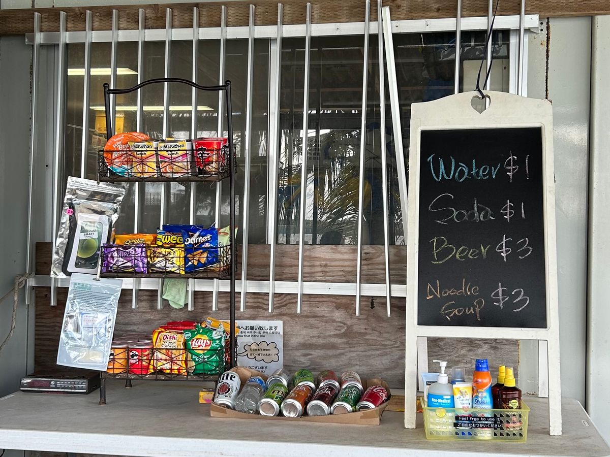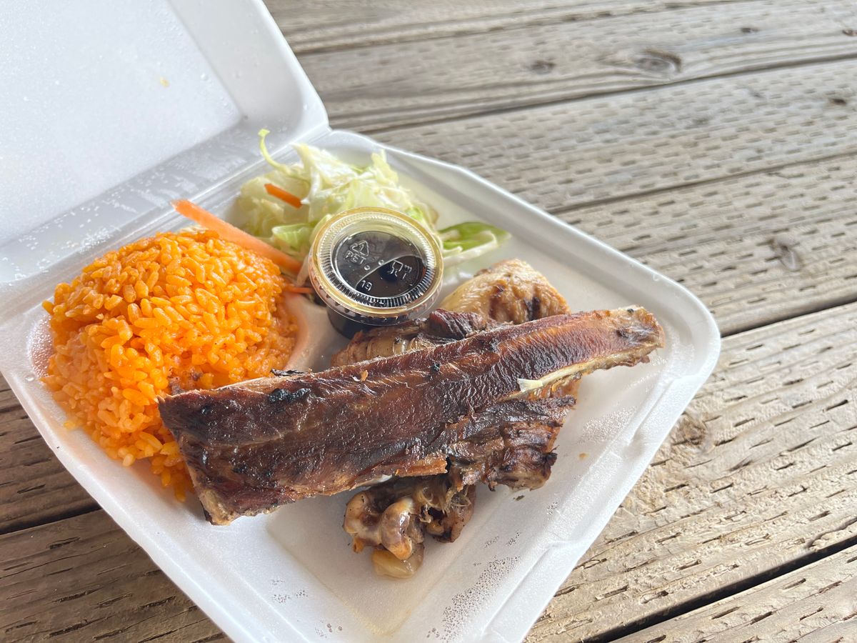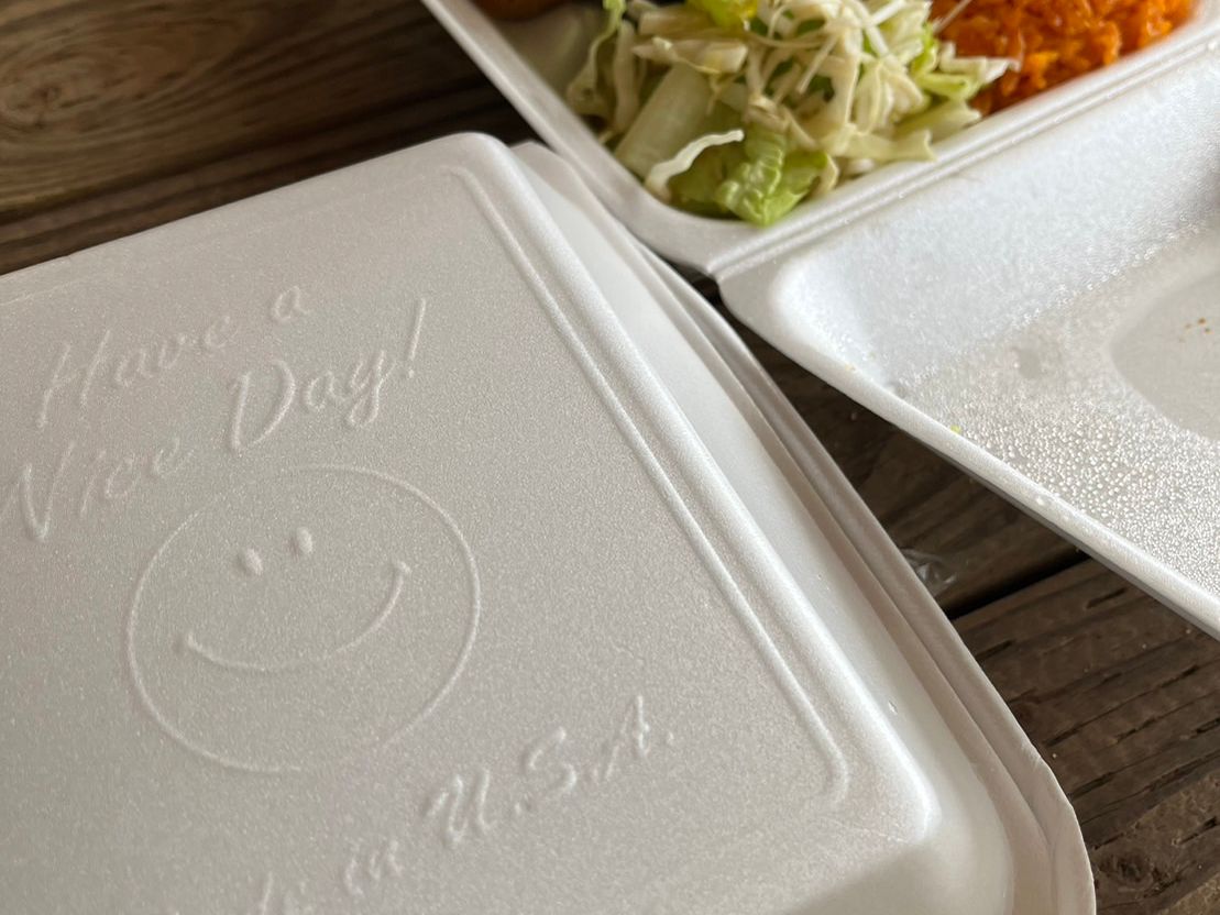 お昼ご飯はチャモロ料理のBBQお弁当と冷たい水をいただきました。スペアリブとチキンがとても美味しかったです。