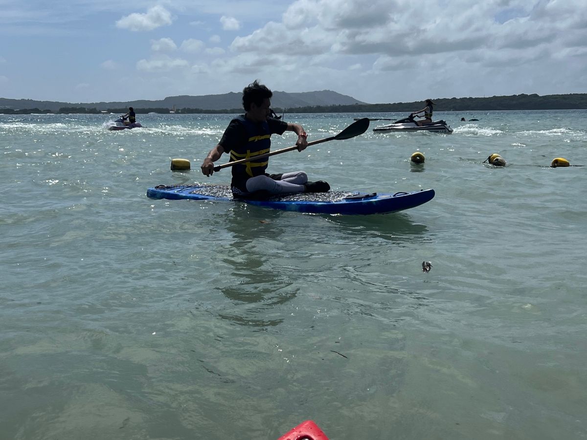 ここからはパラセーリングからビーチに移動した後の体験です。1番おすすめという感じでしたので最初に行わせていただきました。なかなか曲がるコツを掴むのが難しかったり、波で揺れるのにドキドキしたりしましたが、スタッフが先導してくれるので安心して参加出来ました。