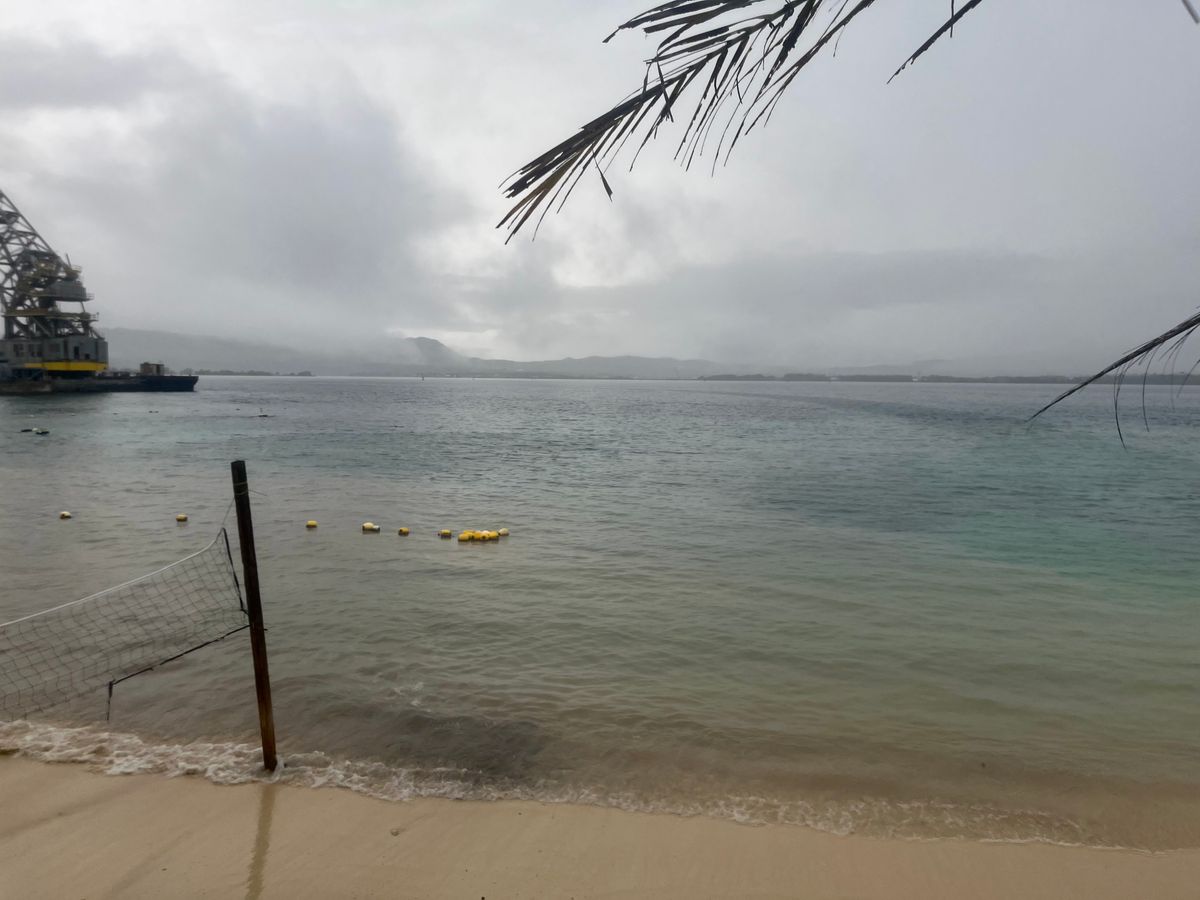 当日は日本を襲った大寒波の影響でグアム周辺の海も珍しく荒れた状態で、内海に面し普段は透明度の高いアプラビーチの海も白砂が舞い上がってしまっていましたね。