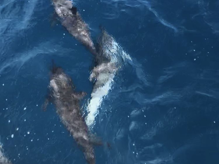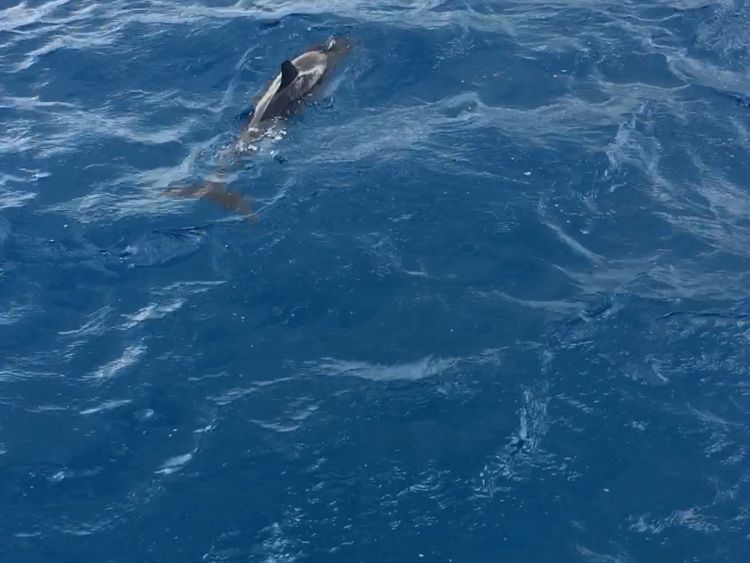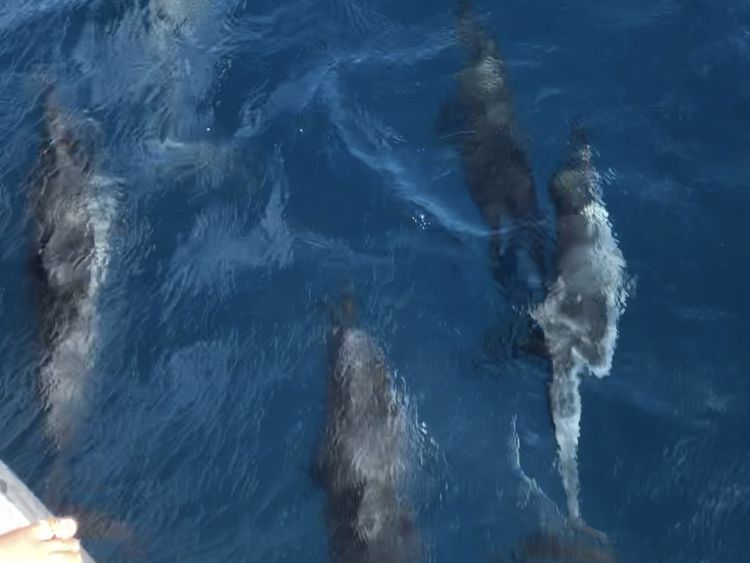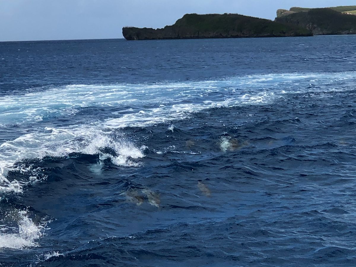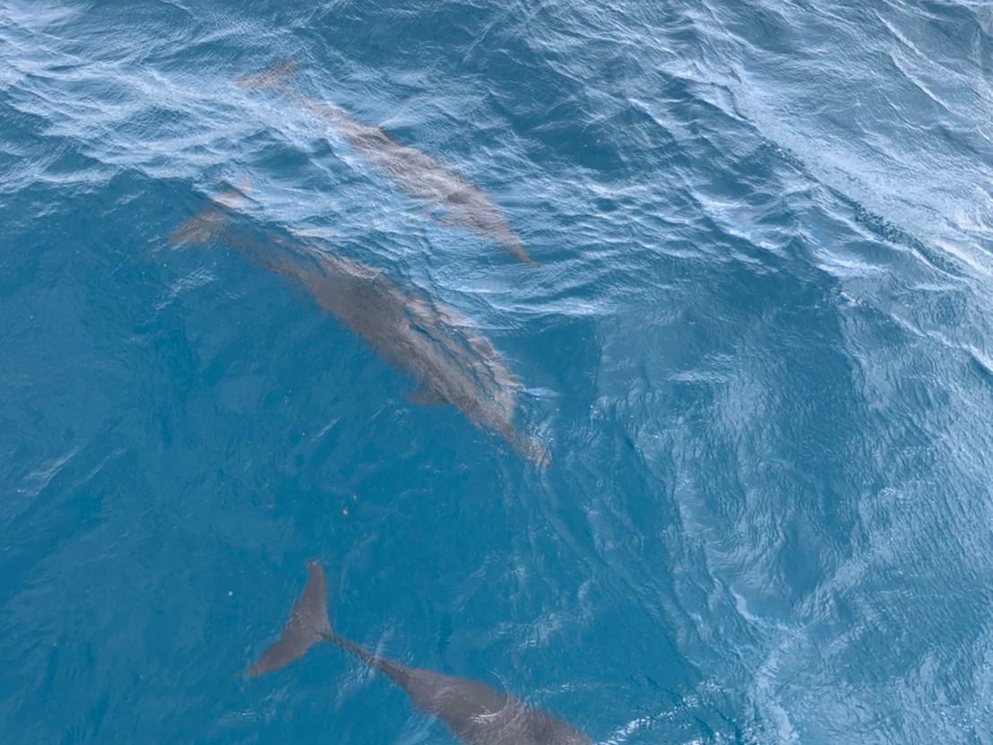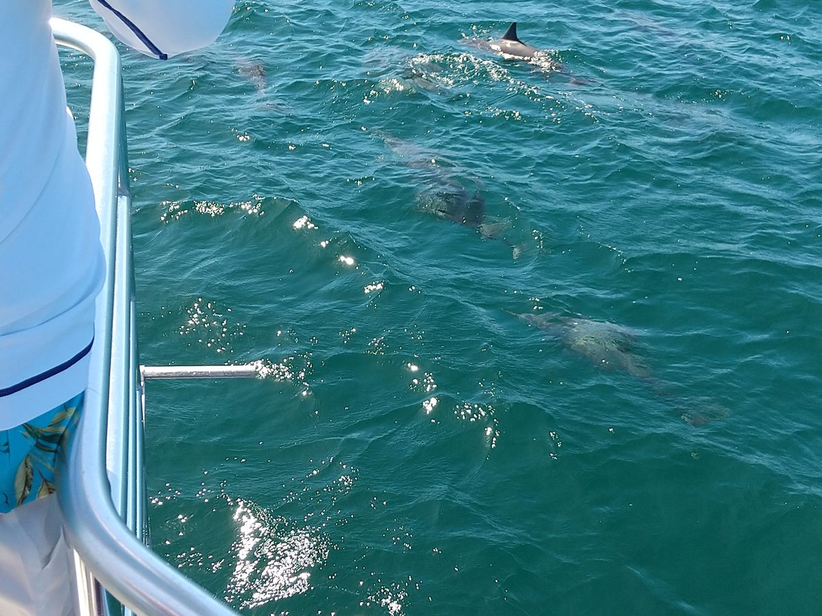 出港後20分くらい乗船した頃にイルカの群れに遭遇、イルカに会えました!
