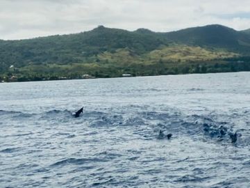 滞在2日目の8:30のツアーに参加しました。日本人ガイドのヒロさんが迎えに来てくれ、最初から安心感がありました。2箇所ホテルを経由して、お店でトイレを済ませていざ、船に乗り込み出発!前の週までは天気が良くなかったとのことでしたが、その日は快晴でした。それだけでもラッキーと思っていましたが、イルカに会えるポイントに着き、船長が船を回遊させると多くのイルカの群れが!30頭くらいの群れだったようで、ここ最近の中では大きな群れとのことでした。4歳の子どもを連れての参加でしたが、子どもにいい場所を教えてくれて、子どももバッチリ見ることができ、大喜びでした。子どもだけではなく大人も興奮しました!時計回りと反時計回りで船を動かしてくれ、船の左右どちらに乗っていてもしっかり見えるように配慮されてたと思います。イルカウォッチングのあとは水上トランポリンやシュノーケリングなどを楽しみました。イルカウォッチングだけじゃなくて他にも楽しみがあってよかったです。あとはウミガメも3回見れました。それはほんとにラッキーって思いました。お弁当付きで申し込んでおり、レビューの通り、帰りのバンの中で受け取りました。ホテルに戻ってから食べましたが、日本人好みの味でした。ホテルに戻ってからシャワーだったので、ランチを食べに出なくていいので楽でした。とてもいい経験だったし、何より子どもが楽しんでいたのでよかったです!また参加したいです。